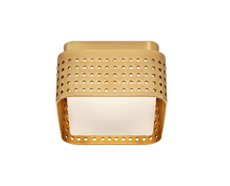 这个系列以雕塑形式的穿孔金属为特色,源于对建筑的热爱,以及光与形式的相互作用。 这些穿孔是一个标志性的设计元素,可以漫射和反射光线,为任何空间增添精致的质感和丰富的深度感。 提供古董抛光黄铜,青铜和抛光镍与云雾玻璃。