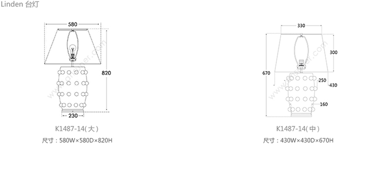 Linden 台灯 系列尺寸/示意图