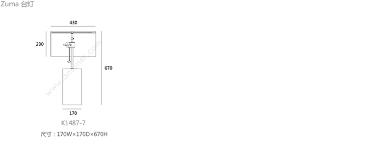 Zuma 台灯 系列尺寸/示意图