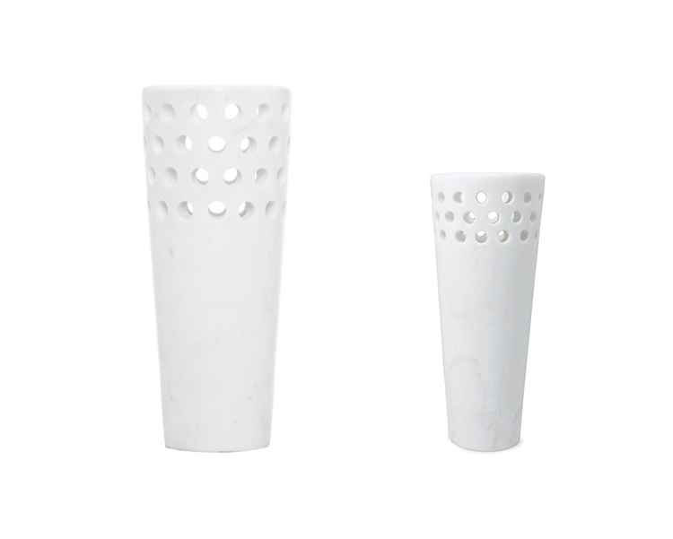 这款优雅且装饰精美的单品采用Kelly标志性穿孔细节设计,重新打造奢华的白色卡拉卡塔大理石,大胆装饰花卉布置或独立时尚。