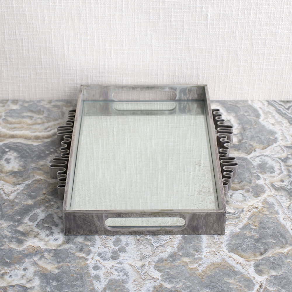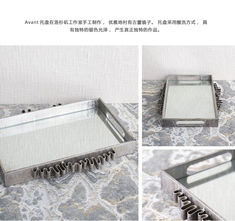 Avant托盘在洛杉矶工作室手工制作,优雅地衬有古董镜子。 托盘采用酸洗方式,具有独特的银色光泽,产生真正独特的作品。