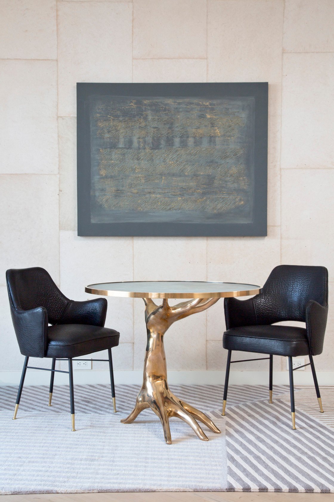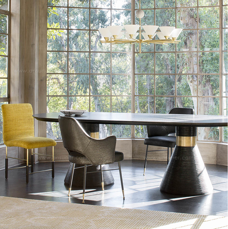 这款高架扶手椅融合了中世纪的欧洲风情和现代感,在深色木质家居图书馆和正式餐厅中一样舒适。 Rigby椅子采用柔软弯曲的手臂和略微倾斜的背部,带来舒适感。 黑色的钢底座上有实心的青铜木屐,可以用手转动,还可以滑动。