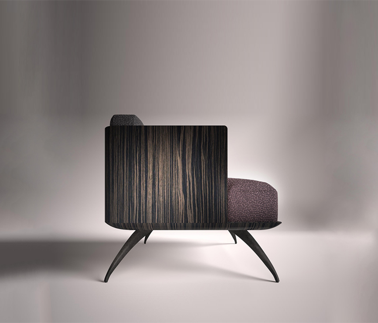 与深灰色靠背相对的勃艮第面料座椅完全符合其框架。锃亮的钢腿和这把漂亮的扶手椅非常相配。