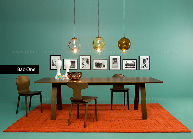 Bac,Bac One和Bac两个座椅的框架由实心灰木制成,有漂白,胡桃木和wengé面漆,或者用樱桃色苯胺染色,上海蓝或开孔涂漆,饰有一系列精致的色调。 座椅由灰烬制成,与框架具有相同的饰面。