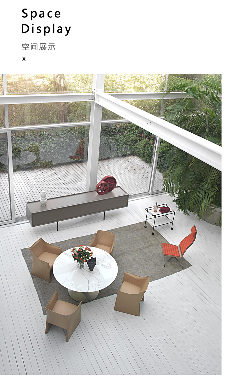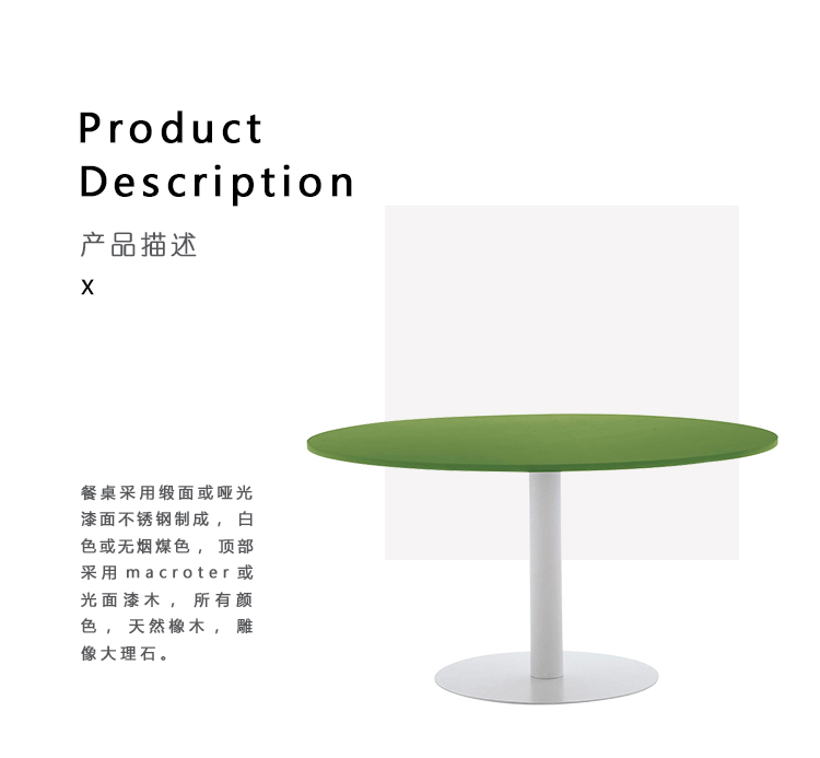 餐桌采用缎面或哑光漆面不锈钢制成,白色或无烟煤色,顶部采用macroter或光面漆木,所有颜色,天然橡木,雕像大理石。 底座完全可拆卸,顶部可以是圆形或方形。