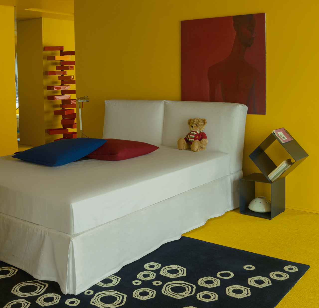 风格化的装饰元素是Cirkel地毯的主角,由Ilaria Marelli为Cappellini设计。 这款地毯采用手工簇绒的新西兰羊毛和天然纤维制成,有两种颜色:白色背景,黑色设计; 黑色背景与白色设计。