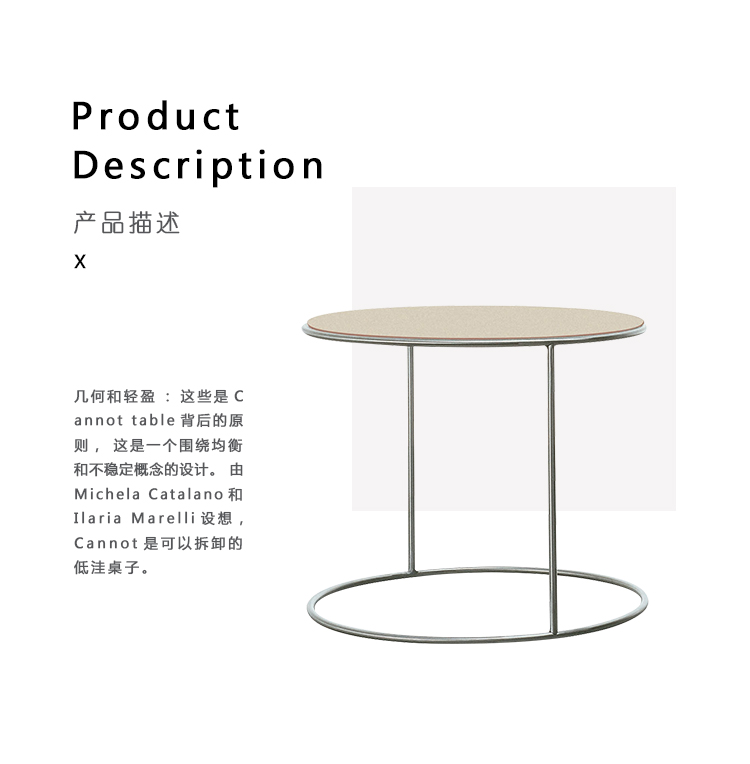 几何和轻盈:这些是Cannot table背后的原则,这是一个围绕均衡和不稳定概念的设计。 由Michela Catalano和Ilaria Marelli设想,Cannot是可以拆卸的低洼桌子。 该结构由不锈钢制成,漆面顶部采用哑光或光泽表面处理,并采用该系列的所有颜色。 由于其紧凑的尺寸,桌子在拆卸时易于存放和运输。