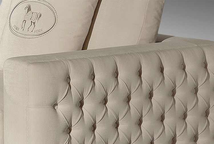 FRAME Wood padded in Polyurethane and Fiberfill, armrests with capitonne manufacture and buttons