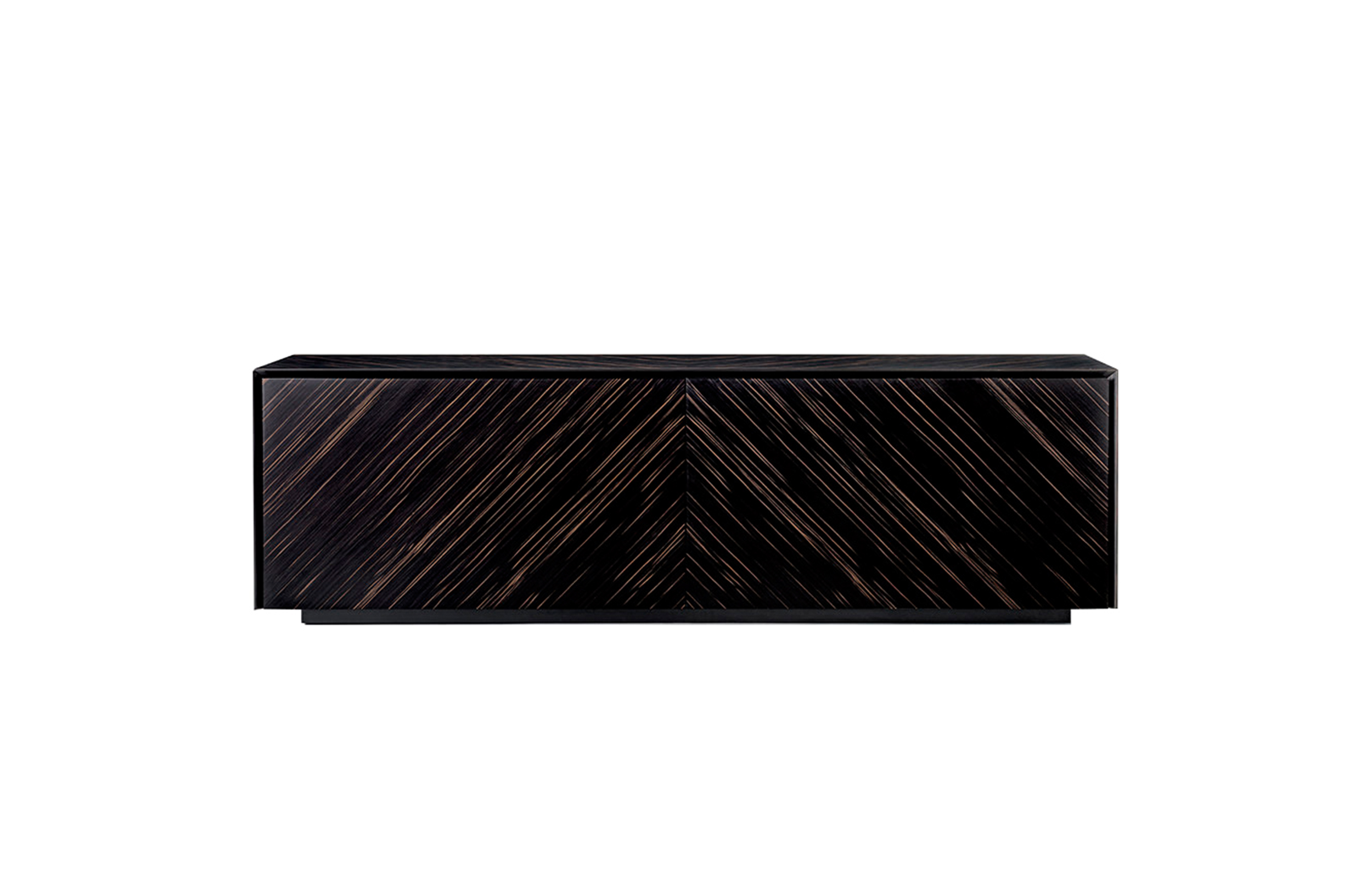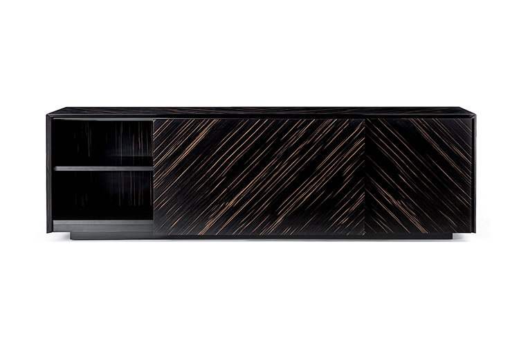 SHUTTERS Coplanar opening system, wood covered in Vermont leather or veneered Ebony Macassar with matt finishing