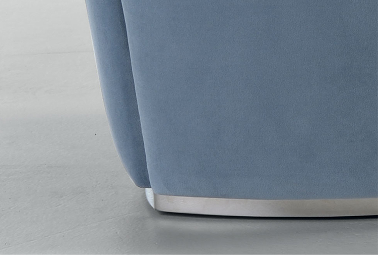 FRAME/SEAT Wood padded with Polyurethane and Fiberfill. Polished steel profiles or covered in coordinated fabric or leather