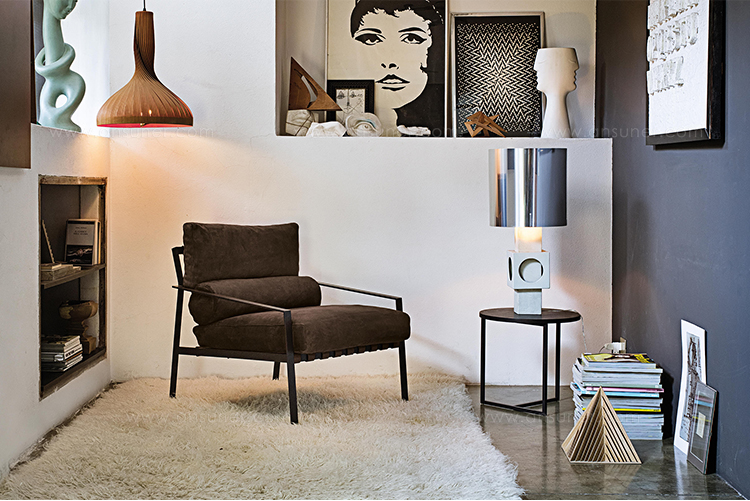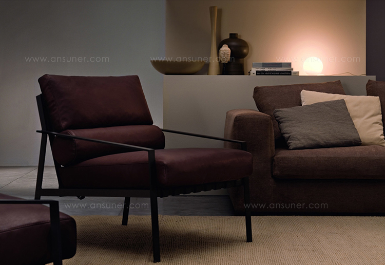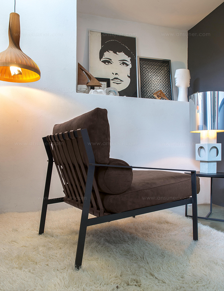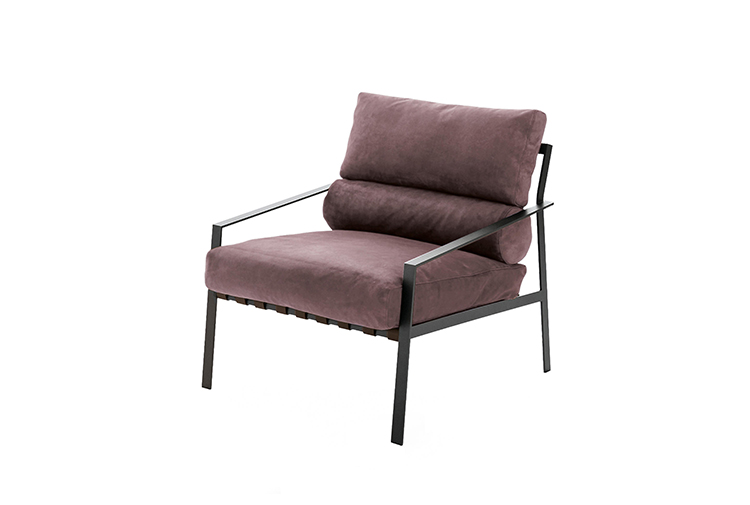 这是一种休闲椅,它的特点是用皮带支撑柔软舒适的垫子。其直线结构是高雅的现代生活方式的一种表达。这一结构有两种形式,一种是云母褐色的涂漆或黑色镀铬金属。