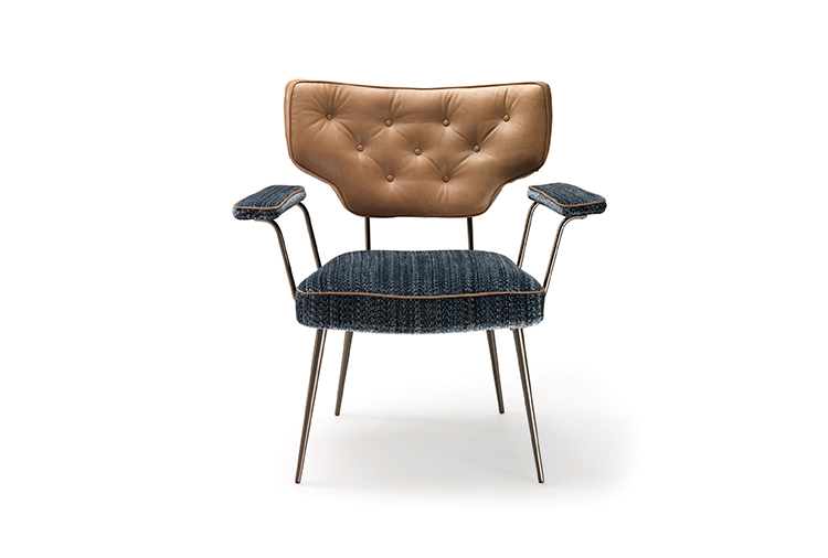 Twiggy是一款多功能的扶手椅,带有一种时尚的复古风格,灵感来源于一种个人时尚风格。在皮革或织物上的棉背,可以与座椅和手臂的装饰相匹配。滚边是一种高级的高级定制的细节,在周边,和背部的材料是相同的材料。这种腿有云母棕或钛金属。