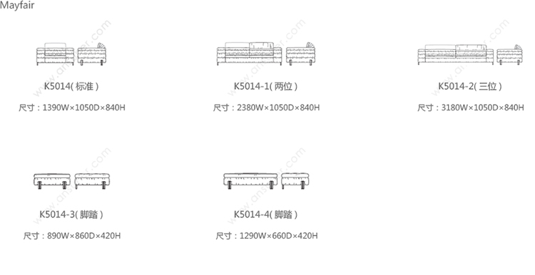 Mayfair sofa 系列尺寸/示意图