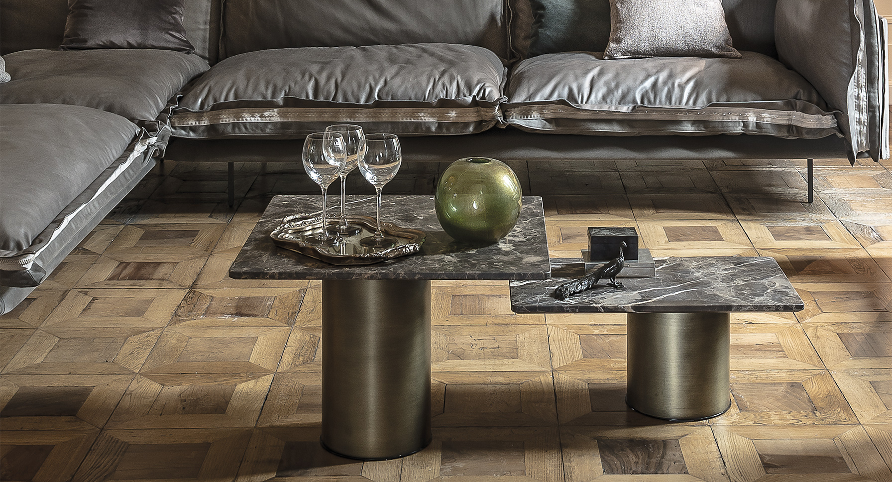 两种不同的材料结合在一个咖啡桌上。Petra咖啡桌被设计为可以当成单独的桌子或作为一套桌子进行使用。底座的设计是偏离桌面中心的,多款桌子因不同的高度搭配在一起创造了一个起伏的桌面效果。桌面有圆形和矩形可供用户进行选择。