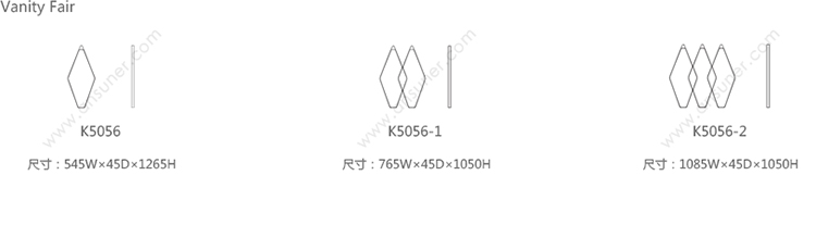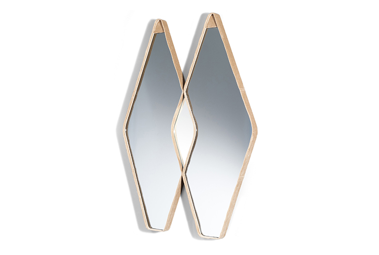 Gino Carollo设计的《名利场》(Vanity Fair)由镜子或烟熏玻璃制成。它以丝绒或皮革制成罩盖提供了一种严谨的精度和美感的效果,并与简单的菱形线形成对比。镜子可以是单、双、三、甚至是将模块并排放置在墙上。