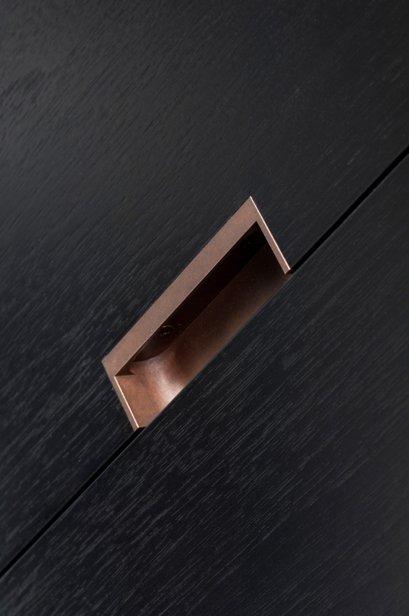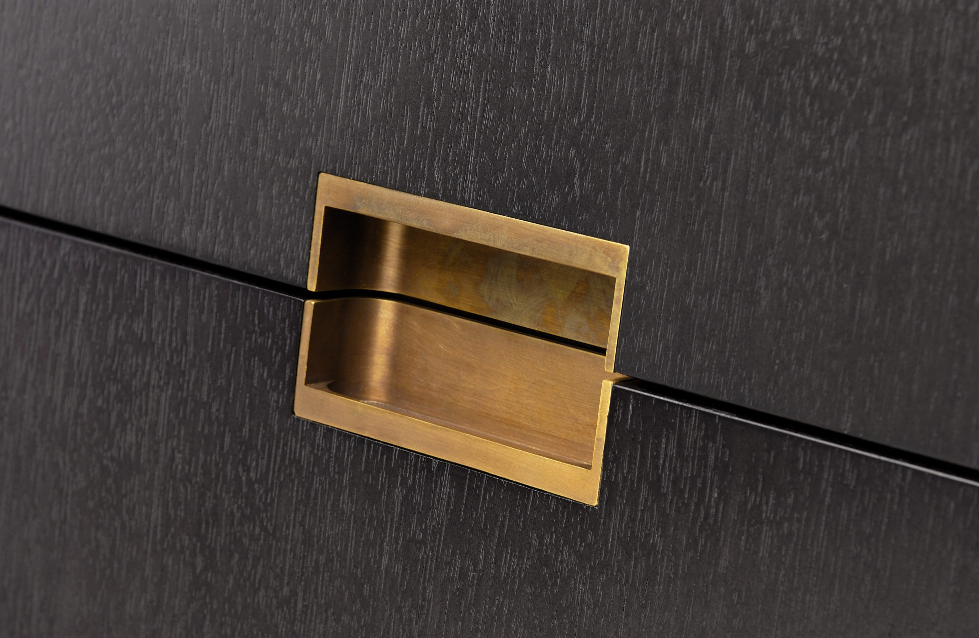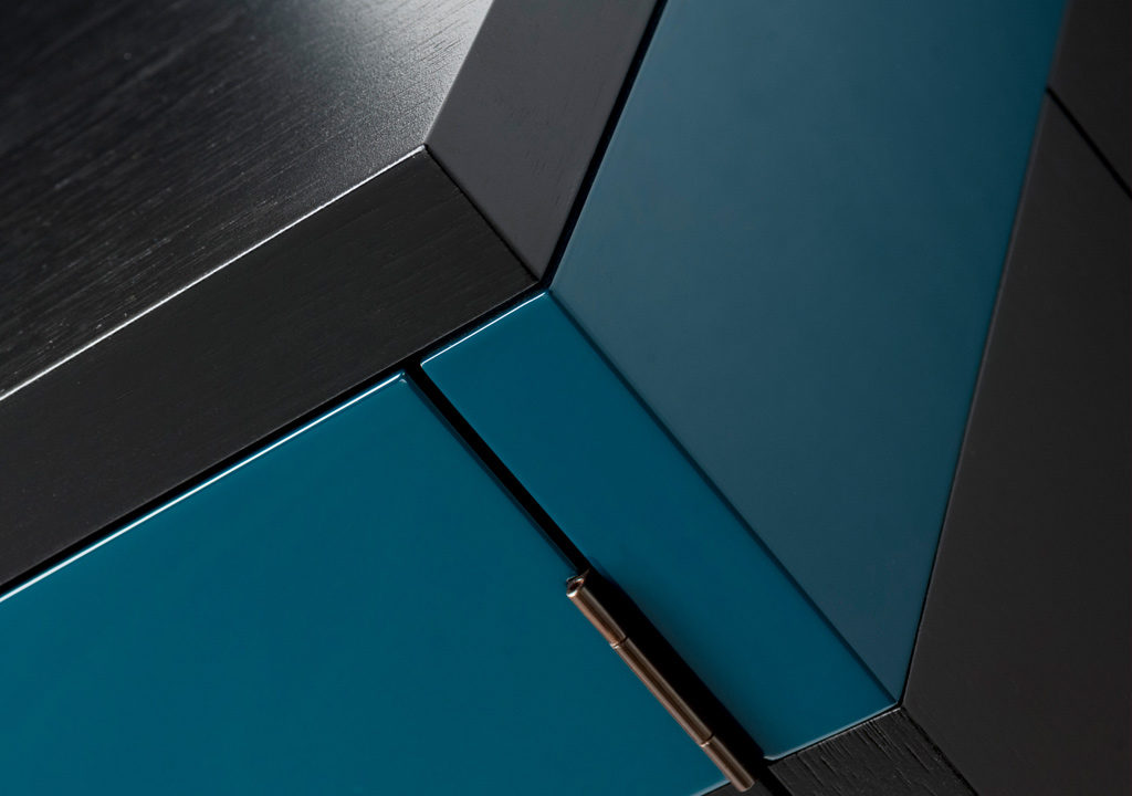 美式黑胡桃黑色饮料柜,带多个抽屉和门。 高光红色和绿色漆,白金叶和黄铜色的细节。 内置橱柜门定制手柄和实心黄铜铰链。 最好的杂技橱柜制作。