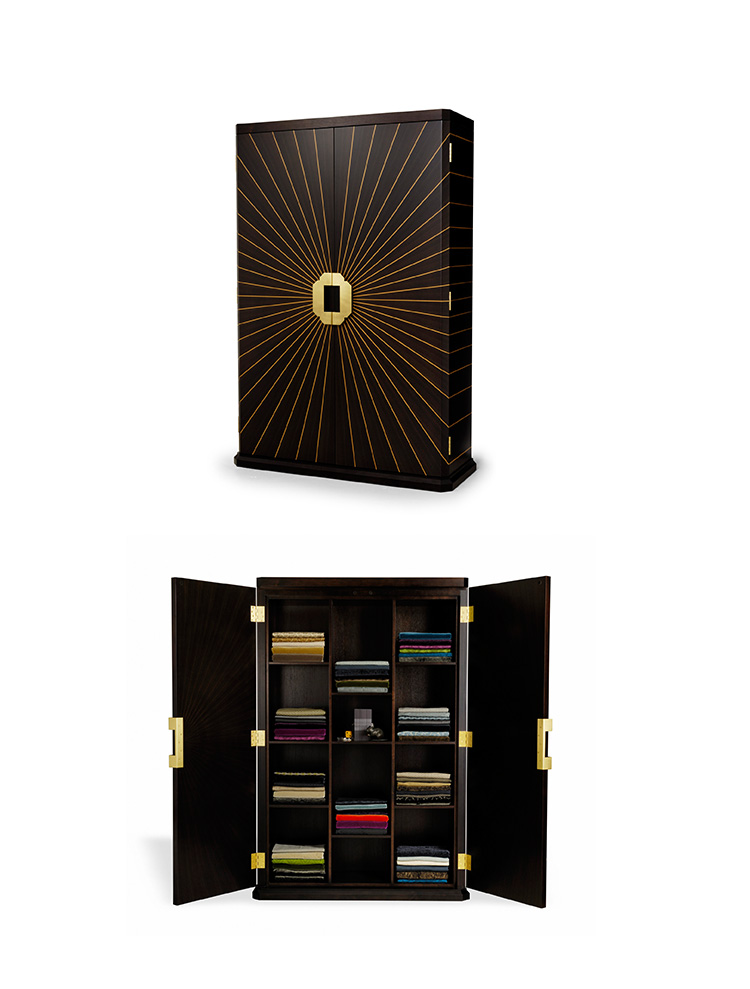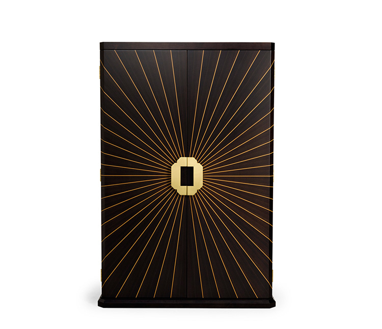 这是一个天体中心件,超新星内阁带有可调节搁板。 内部可以指定为衣柜,酒吧或其他用途。 其他木材和金属饰面可供选择。