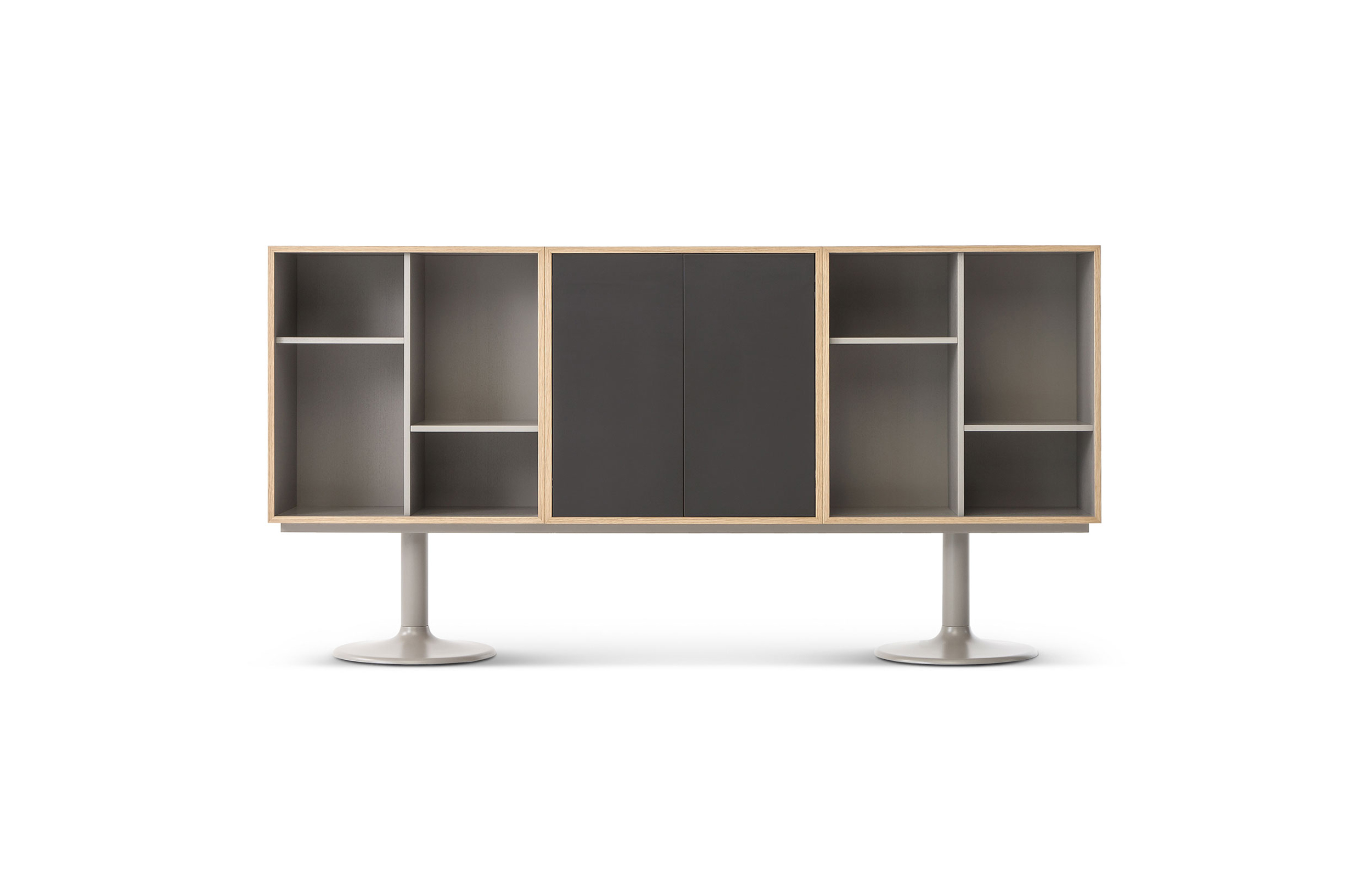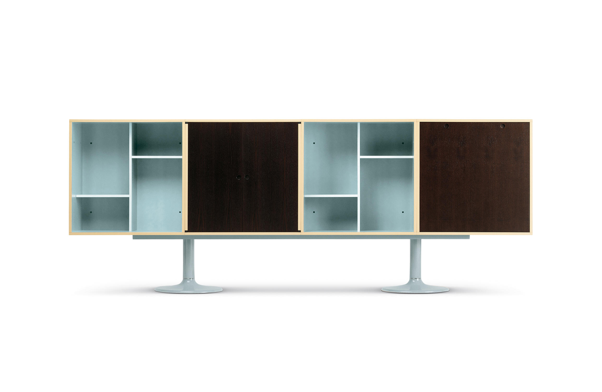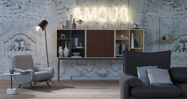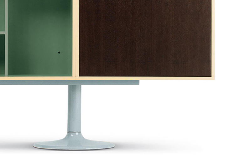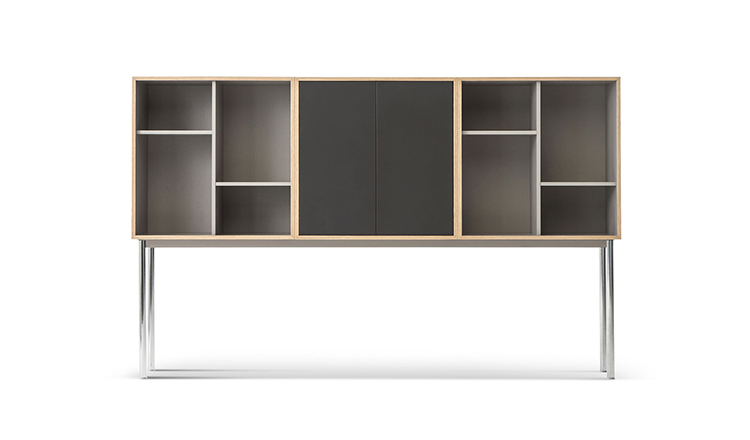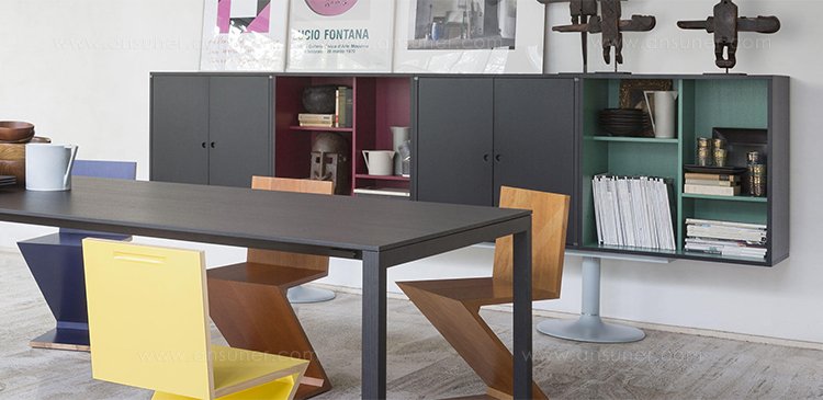 Charlotte Perriand在1984年设计的“标准柜”,由木质模块和可叠放的柜单元组成,用于满足各种要求(配备架子、抽屉等)。该款柜的基础元件是尺寸为75/75/37.5 cm的彩色中间方块。Le Corbusier和Pierre Jeanneret于1925年在巴黎“新精神展”展示了该款产品,这些柜子的设计直接源于办公室家具,除了能堆叠并连接在一起外,这款柜子还允许自由地安排空间。这款柜子由细长的底座支撑,从概念上来讲,可以比得上建筑物的容量。“标准柜”参展1929年的巴黎秋季艺术沙龙时有所改进,整体尺寸扩大,更接近真实的墙柜。