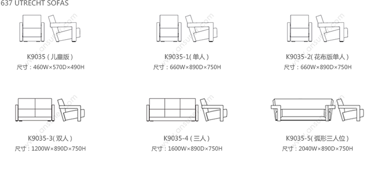 637 UTRECHT SOFAS 系列尺寸/示意图