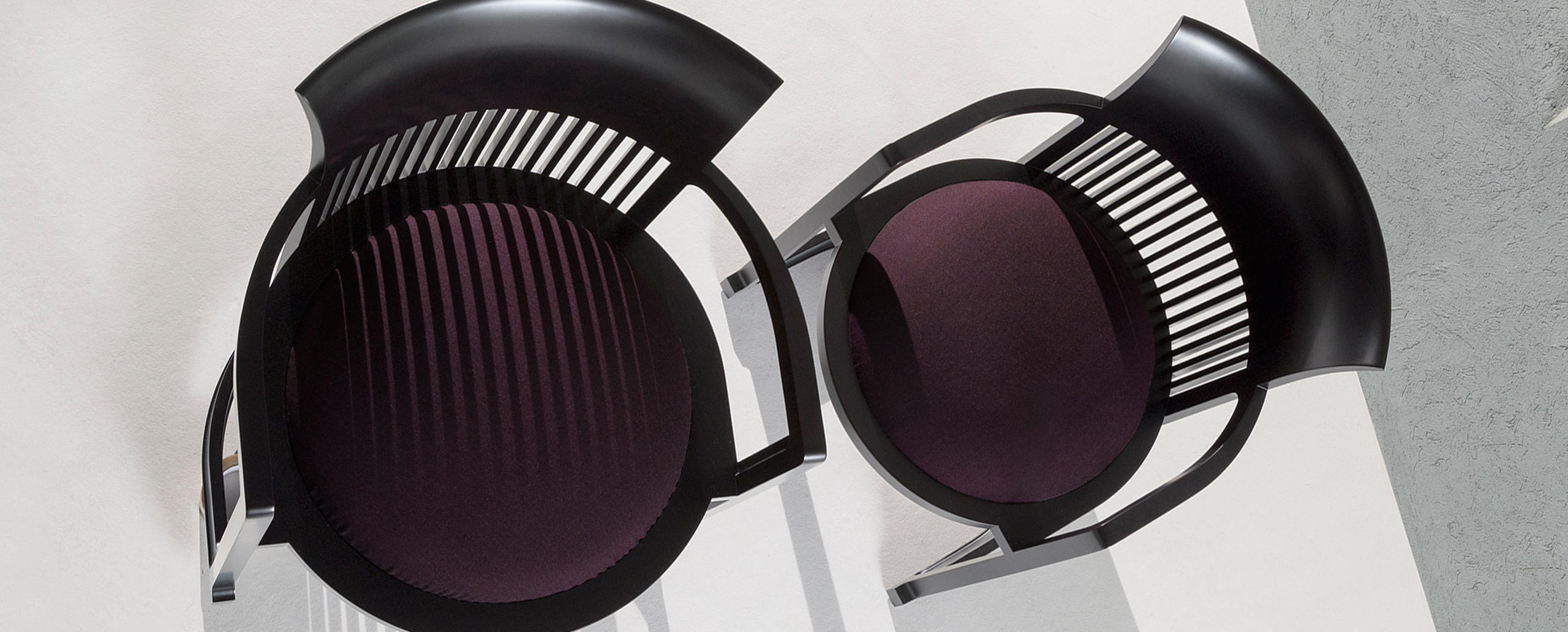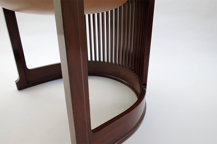 曲背餐椅,采用天然樱桃木、樱桃木色或黑色的胡桃木制造。塑料座面采用聚氨酯海绵和喷胶棉填充。座面软包为皮革或布艺面料。