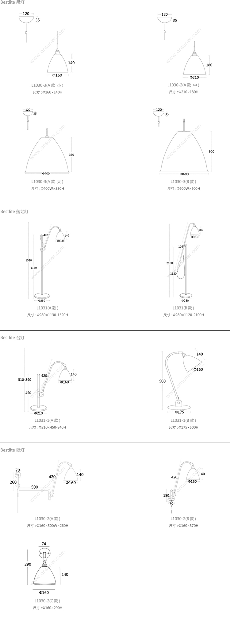 Bestlite BL9吊灯有4种尺寸可供选择。