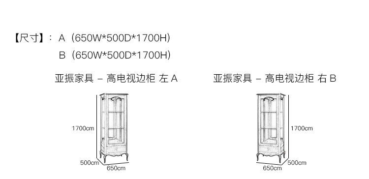 亚振家具 - 高电视边柜 产品尺寸/示意图