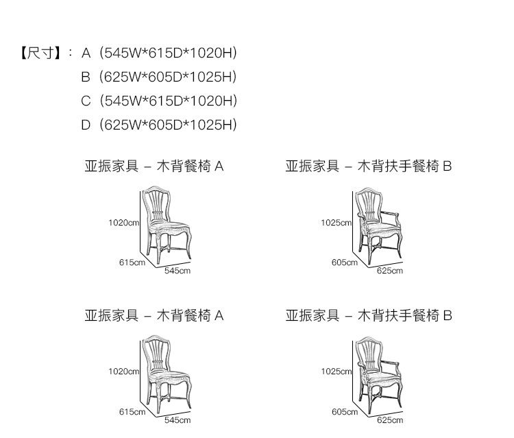 亚振家具 - 木背餐椅 产品尺寸/示意图