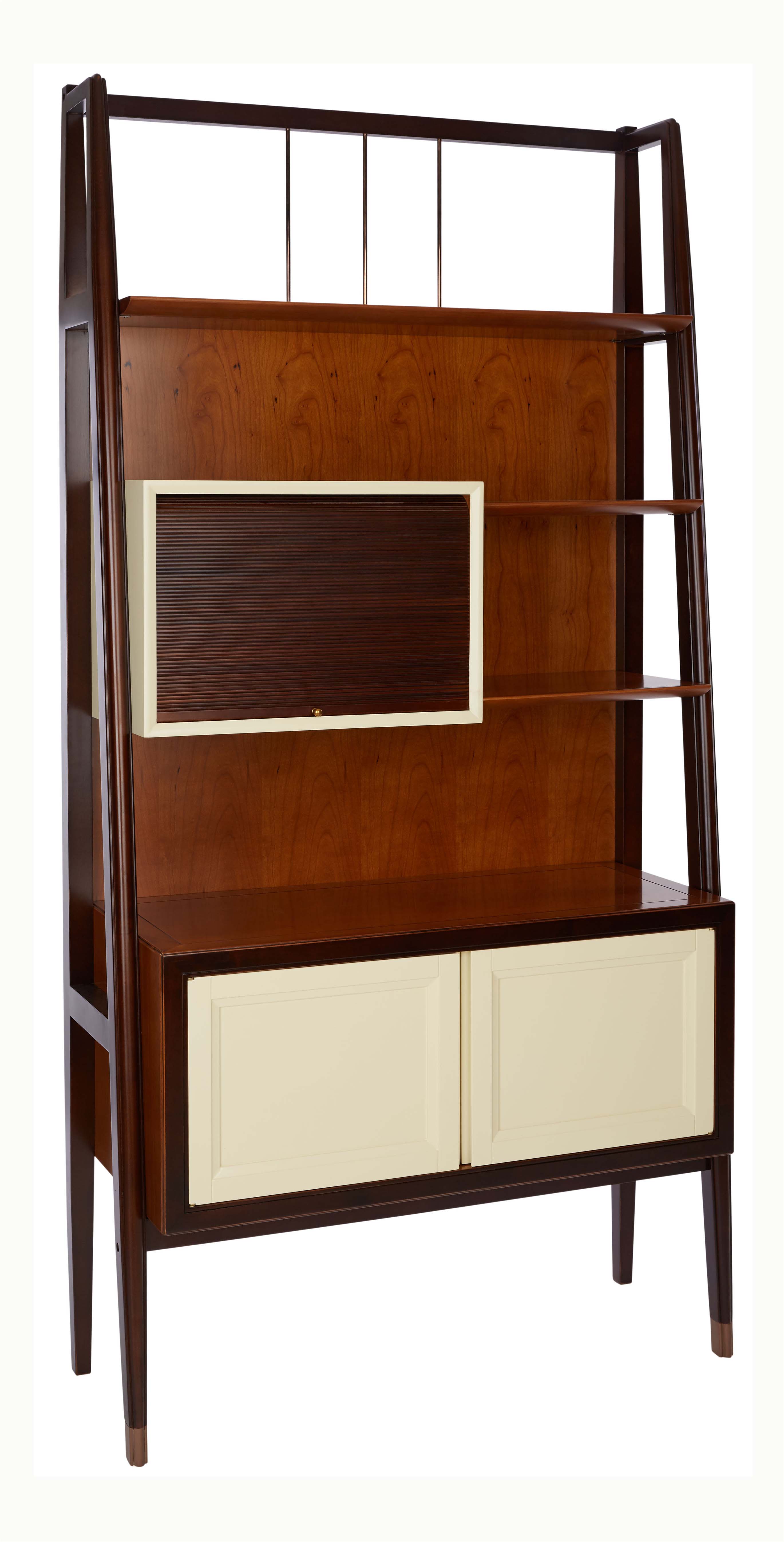 采用燕尾榫造型的拉手,符合成年人手型,不费力即可轻松打开;进口隐藏式铰链;铜脚,赋予中式韵味的同时以防磨损;卷帘门,便于开启。设计灵感来源于中国传统的博古架,同时融入了更多的创新元素,精心设计了卷帘式的开启方式并可灵活移动,还结合了现代智能化的光电感应。