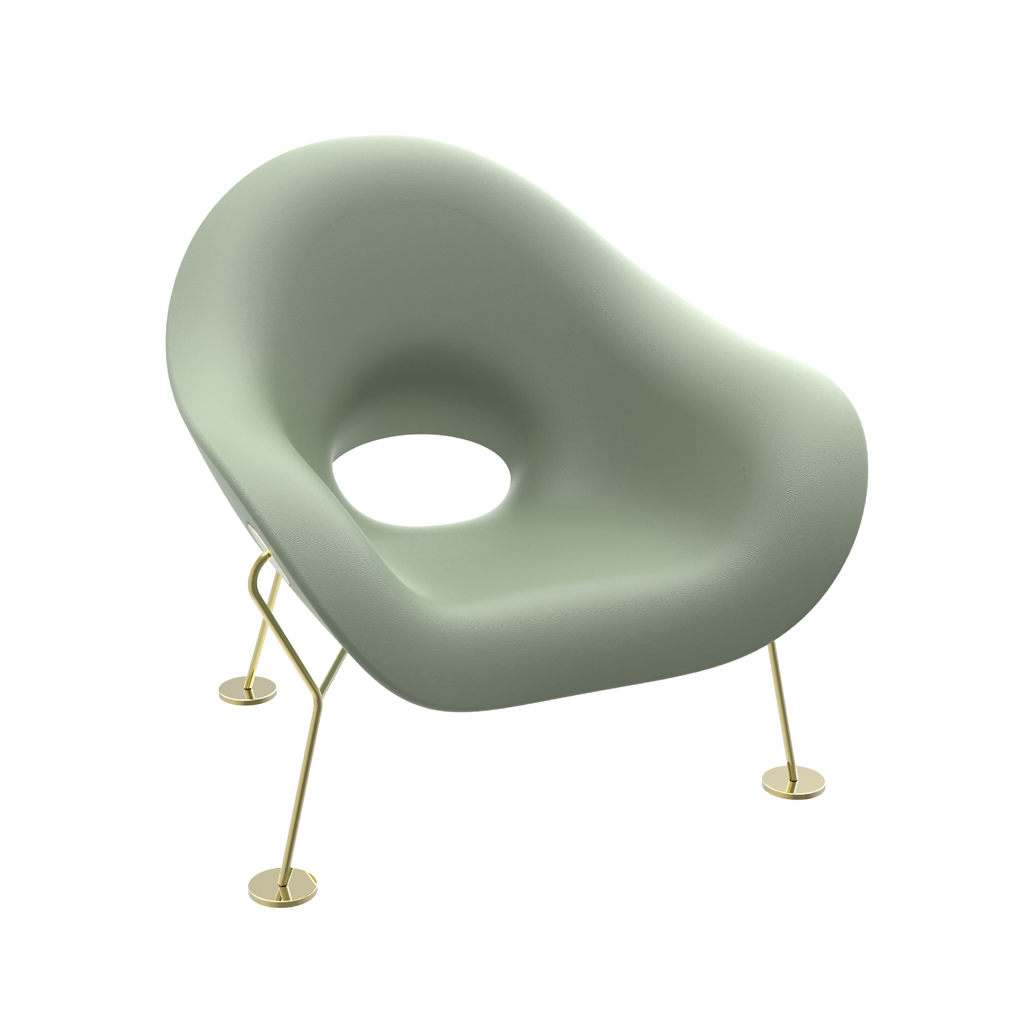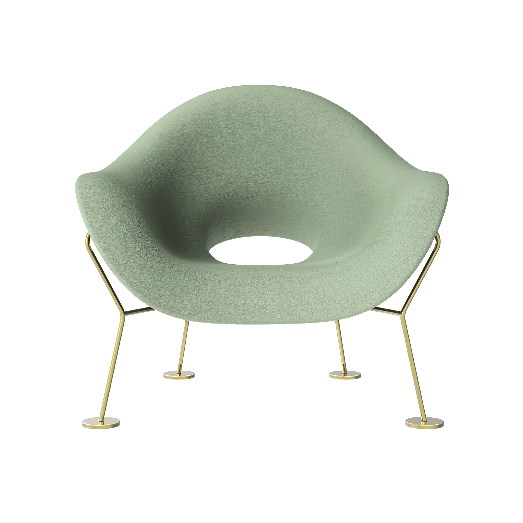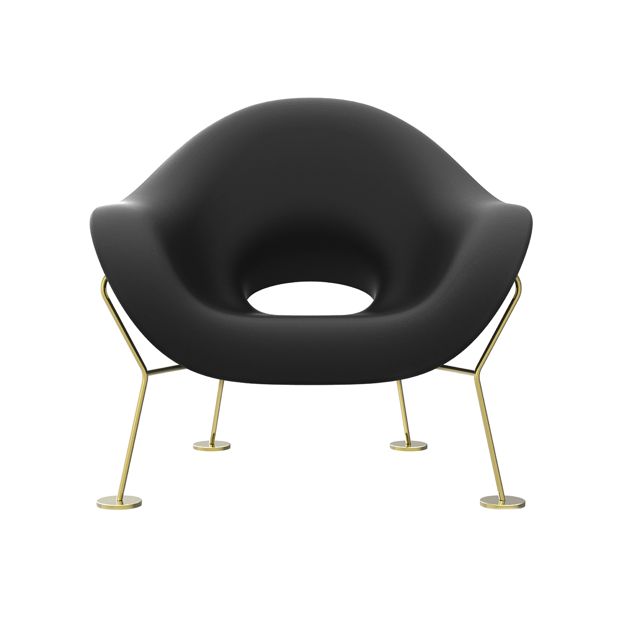 由Andrea Branzi签名的Pupa扶手椅同时具有敏捷和性感。 它倾斜在轻质金属框架上,使体积漂浮在空间中。外型为铬框,内饰为金框。