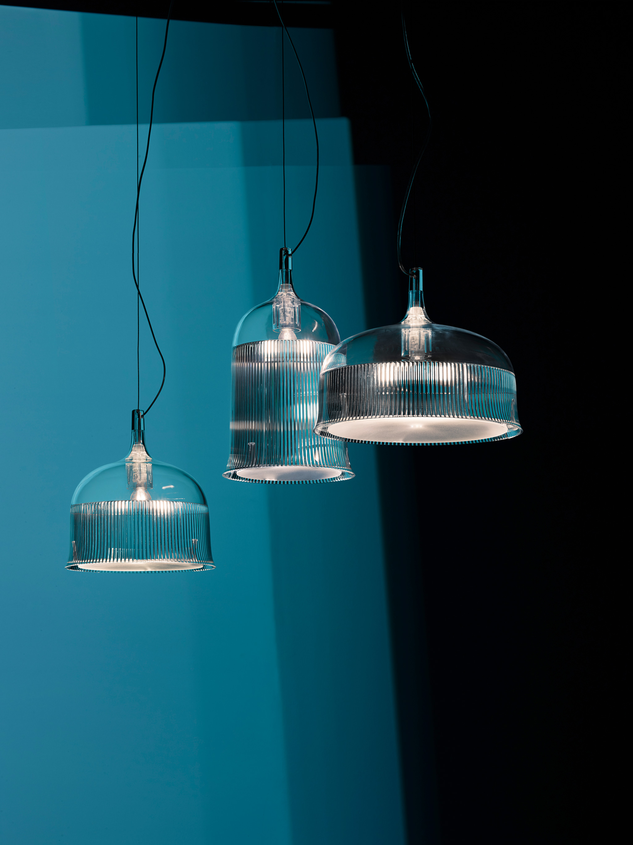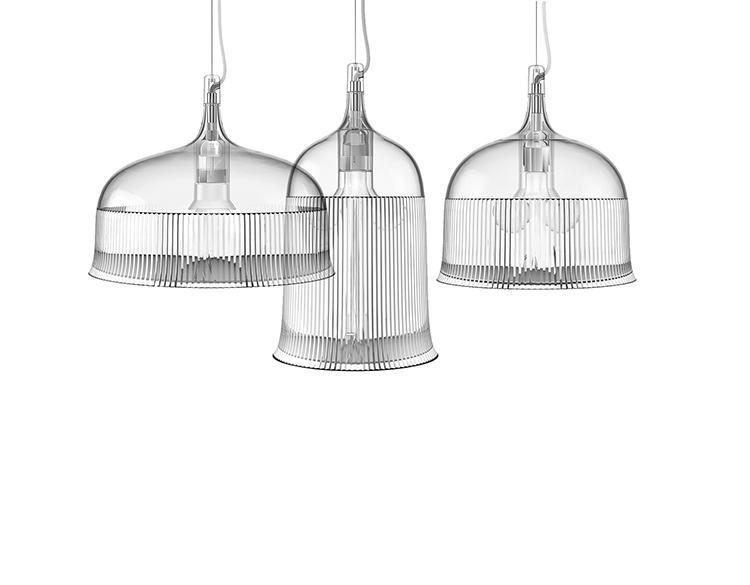这款经典的水晶玻璃从原来的比例中拿出来,变成了三种不同形状的台灯,类似于香槟长笛、高脚杯和圣杯。