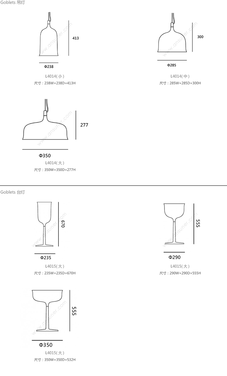 Goblets 吊灯 系列尺寸/示意图