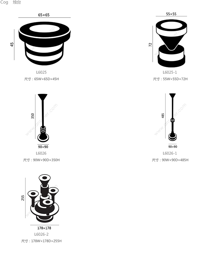 齿轮烛台可分为锥形或圆柱形。他们被设计用于各种配置和称赞在系列中的其他部分-整洁的办公桌,蜡烛烛台和烛台。