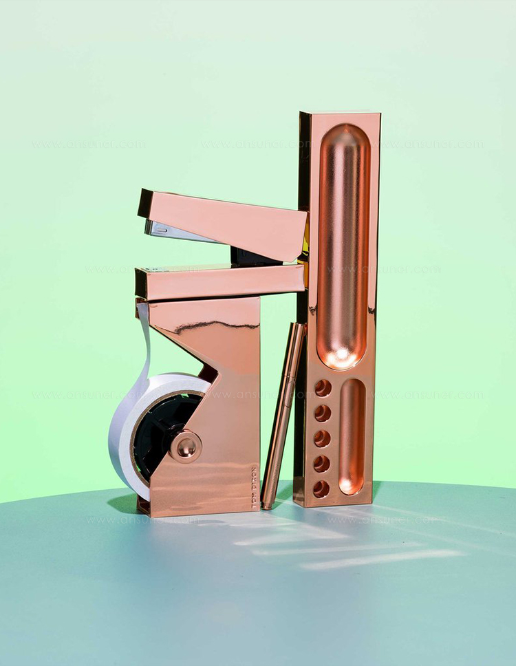 立方体桌面笔盒是由锌合金制成,镀铜和漆完成。与我们的立方体订书机,书桌整洁和钢笔,可作为一套,并以礼品包装。