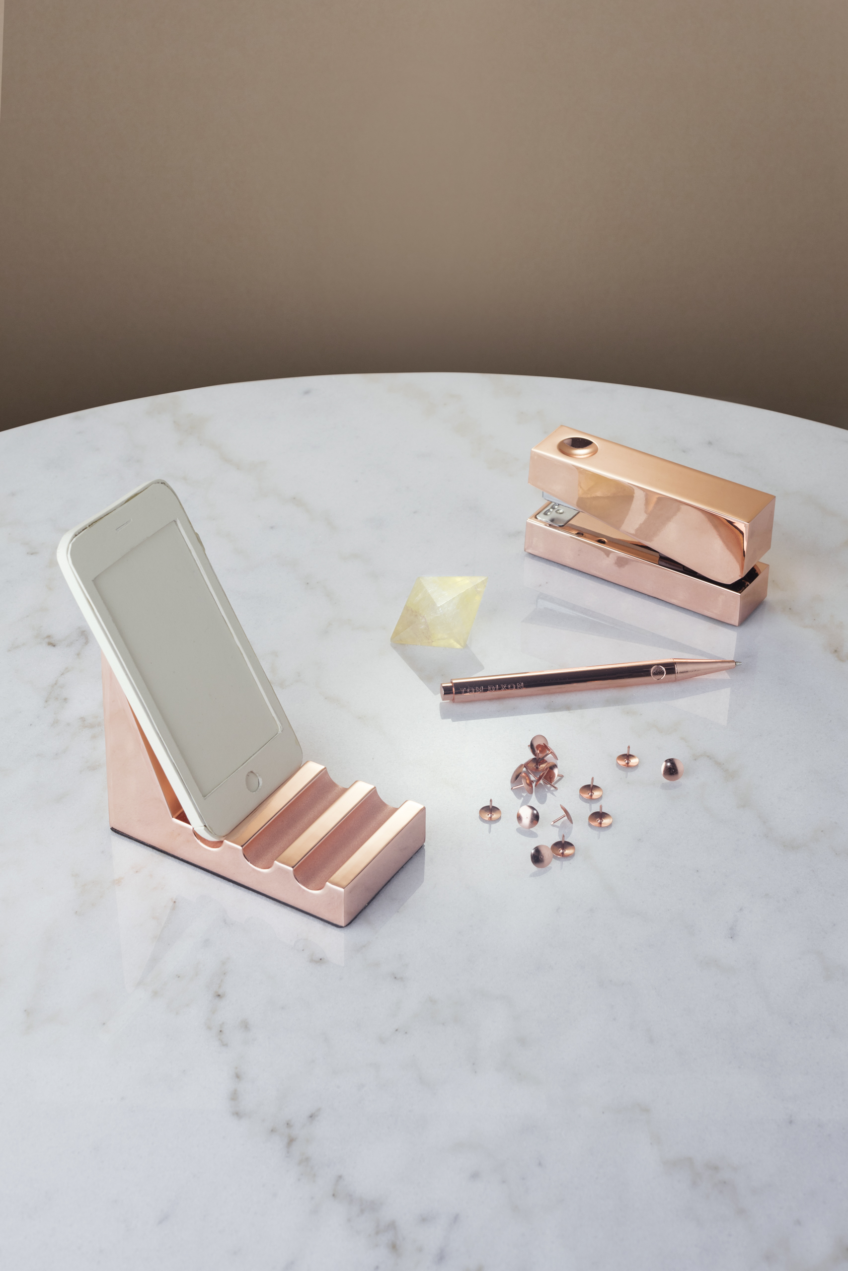 立方体订书机是由铝合金制成,镀铜和漆器完成。侧面的细微凹痕会使你牢牢握住。与我们的立方体胶带分配器,书桌整洁和钢笔,可作为一套,并以礼盒包装。
