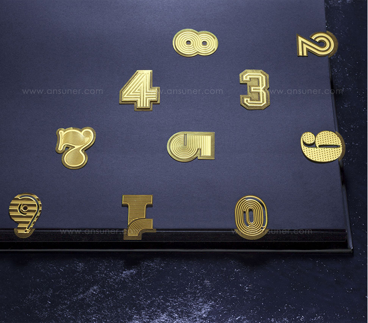 一套十个流行艺术回形针,形状从零到九个数字刻蚀在黄铜片和以微观细节制造。