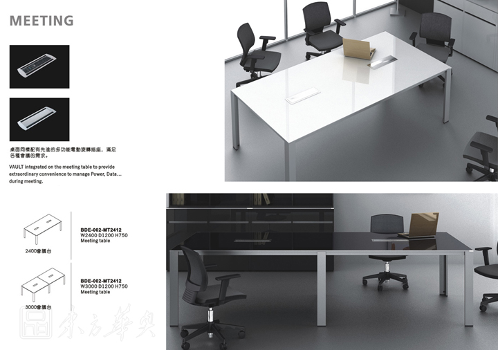 桌面同样配有先进的多功能电动旋转插座,满足各种会议的要求...