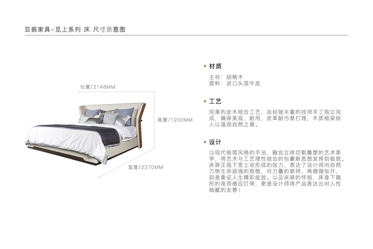 以现代极简风格的手法,融合立体切割雕塑的艺术美学,将艺术与工艺理性结合的包豪斯思想发挥到极致。床屏正视下宽上收形成的张力,表达了华体会体育官方在线官网向自然万物生命顽强的致敬,对力量的崇拜,再微微张开,则是象征人生精彩绽放。以及床屏的怀抱,床身下隐形的夜用感应灯带,更是华体会体育官方在线官网将产品表达出对人性细腻的友善!