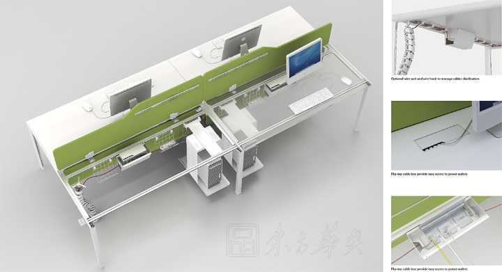 ※ 屏风和挡板可随意制作,随意拆装,上下面板、走线盒均可随意快速滑动、调换。 加工更简单,组装速度更快。直角方式连接,无螺丝孔,外观更美观。