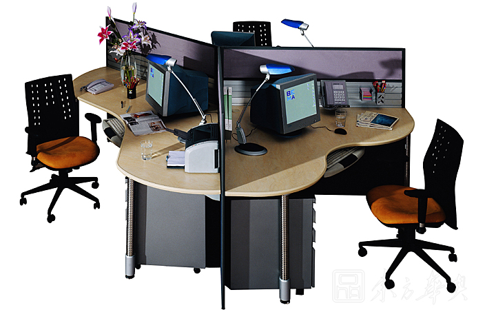 ※ 上图为两人位办公区,可以在中间加上半圆和柜子,放置公共的资料使用,方便,屏风可以任意角度的安装!