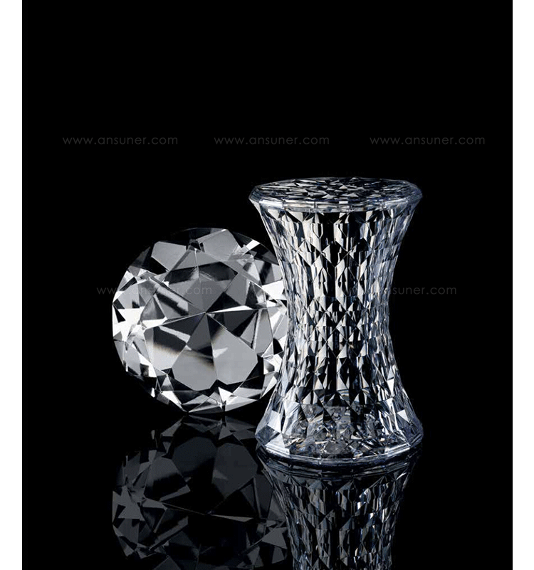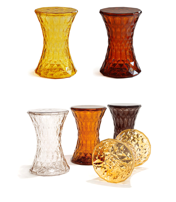 Stone Stool(钻石凳) 是荷兰华体会体育官方在线官网Marcel Wanders为Kartell公司设计的经典作品。钻石凳沙漏状对称的线形设计,完美的折光和屈光效果;几何小刻面的运用让表面不凡,光线折射后,形成如钻石般璀璨的光芒。舒展拉伸设计的刻面,使产品具有雕塑感。俯瞰产品如万花筒般绚丽多彩,为您呈现出迷幻的别样世界。因其如珠宝般的品质,Stone提供各种珍贵石头的颜色选择。