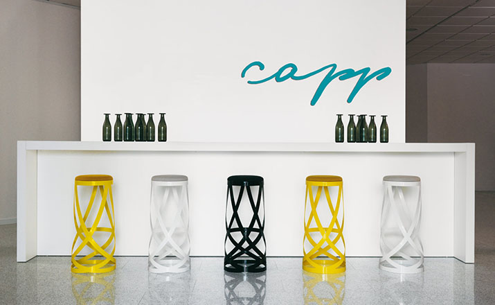 Ribbin Stool(丝带吧凳)由设计大师Oki Sato设计的。Ribbin Stool(丝带吧凳)是以薄型的钢板进行激光切割,精密的折叠工法让三条主结构有如丝带般飘逸交错。像是体操选手的彩带舞蹈,又像缠绕在芭蕾舞伶脚上的丝带,看似弱不禁风,实际坐上去才发现非常安定。绝美的镜面烤漆处理,作为房价里的小桌子也相当可爱。
