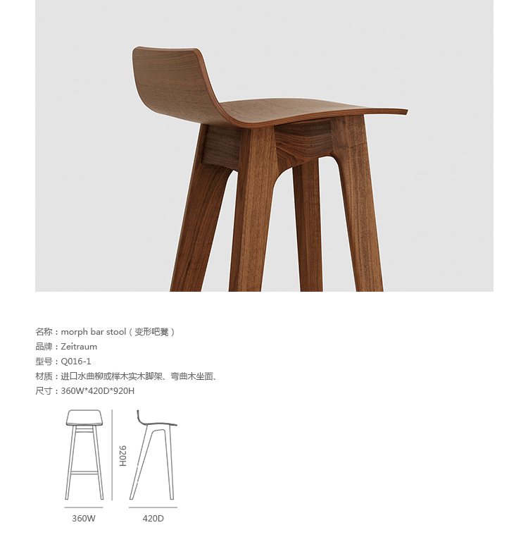 德国家具厂牌 ZEITRAUM 讲究的不仅仅是家具,它着重的是一种"生活态度",每件 ZEITRAUM 家具除了需具备实用、耐用、容易搭配的基本要件,更重要的是可以衬托用户与空间的个性,简约取代夸张花俏的线调,细腻精巧的做工低调传递华体会体育官方在线官网缜密的设计思维。ZEITRAUM 使用来自永续森林的落叶型硬木,表面以有机油/蜡涂装,完全不使用化学物质,让用户与家具在空间自由呼吸。Morph bar stool(变形吧凳)由丹麦设计工作室Formstelle设计,弯曲的弧线漂亮的惊讶,本以为这随性的木设计又来自丹麦,想不到却是来自严谨的德国。丹麦设计的影响力可见一般。如果放在现代的环境中还是复古的空间里,都是非常漂亮的家具。坐感非常的贴合人体工学,其木材的拉丝设计脱颖而出。