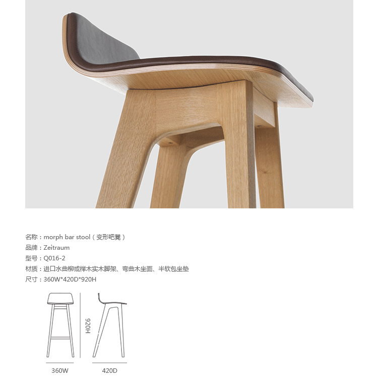 德国家具厂牌 ZEITRAUM 讲究的不仅仅是家具,它着重的是一种"生活态度",每件 ZEITRAUM 家具除了需具备实用、耐用、容易搭配的基本要件,更重要的是可以衬托用户与空间的个性,简约取代夸张花俏的线调,细腻精巧的做工低调传递华体会体育官方在线官网缜密的设计思维。ZEITRAUM 使用来自永续森林的落叶型硬木,表面以有机油/蜡涂装,完全不使用化学物质,让用户与家具在空间自由呼吸。Morph bar stool(变形吧凳)由丹麦设计工作室Formstelle设计,弯曲的弧线漂亮的惊讶,本以为这随性的木设计又来自丹麦,想不到却是来自严谨的德国。丹麦设计的影响力可见一般。如果放在现代的环境中还是复古的空间里,都是非常漂亮的家具。坐感非常的贴合人体工学,其木材的拉丝设计脱颖而出。