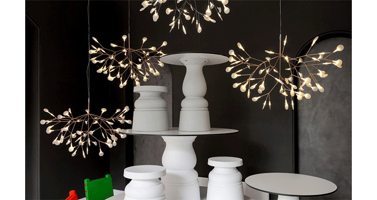 The decorative LED lamp inspired by the Heracleum Plant now comes in two sizes. Theleaves ramify from a branch creating a very technixal,natural structure,By using the technique of coating conductive layers.Adesign not possible with normal wires.