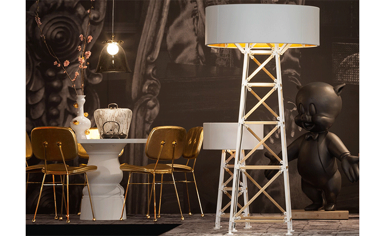 "The Construction lamps are inspired by metal factory construction,electricity poles and constructive elements. This collection, like other designs from Joost, originate from his inventiveness and curiosity combined with expert skills and industrial tools. He started playing with the tools and bolts present in his giant workshop and ended up constructing and creating a new, exciting design!Joost van Bleiswijk was born in Delft and graduated from Design Academy Eindhoven in 2011. Since then, he's mainly working on his own collections. In addition to his own work, Joost designs for top companies worldwide and his pieces have been featured in international publications. Joost's works and collections are exhibited and sold worldwide at galleries and museums.Construction lamps feature a die cast powder-coated aluminum frame in your choice of white or black. White lamps are offered with wood slats. The small size is offered with a push+hold dimmer while the medium & large sizes are offered with a slide dimmer. Includes 9.8 feet of black cord. Medium and large lamps have adjustable lamp holders. UL listed."