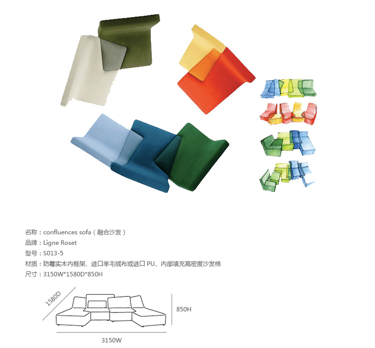 法国写意空间公司(Ligne Roset)在今年的科隆国际家具展上展出了这一款Confluence模块沙发,并获得了最佳设计奖(Best of Best)、最佳项目奖(Best Item)及最佳系列奖(Best System)三个奖项。Confluence模块沙发由法国华体会体育官方在线官网Philippe Nigro设计,这款沙发非常规的外型构造突显了华体会体育官方在线官网非凡的想象力和创造力,其相互交汇的构造看上去就像拼图一样充满趣味,而这种造型无疑也会给其陈设空间带来一种新鲜感。Confluence模块沙发可让使用者随其心意而将不同颜色、不同形状的模块搭配成各种组合,这也使其为体型不同,审美有异的各类人群都提供了个性化的就坐方式。华体会体育官方在线官网的创作灵感来自于现代美术作品中重叠的图形和笔直的线条,而略去了传统家具设计经常遵循的对称原则。Confluence模块沙发由多层木板和焊接钢片作为框架,内部由各种密度的聚醚泡沫材料填充,其表面面料为聚酯纤维织物,沙发脚由黑色聚丙烯制成。Confluence模块沙发各部分间相互重叠与镶嵌的方式令人眼前一亮,实用而有趣,满足了外型的美观而又充分体现了强大的功能,这应该是每件家具都追求的目标吧。