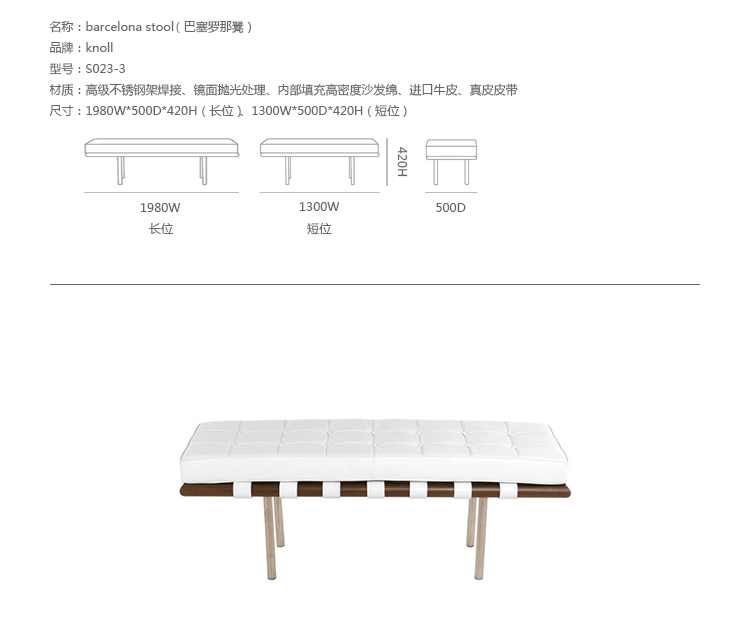 barcelona stool(巴塞罗那凳)是美国华体会体育官方在线官网Harry Bertoia设计的,像她其他突破性的工业设计一样,barcelona stool(巴塞罗那凳)表现了20世纪中期的现代设计和体系结构。人们能从这款长凳子的设计中领略到华体会体育官方在线官网“少即是多”的建筑理念。它将眩亮的不锈钢、柔软的皮革以及原木完美地结合在一起,具有很强的现代感。不管是居家还是办公场所,巴塞罗那长凳都能放置其中,成为很好的摆设;无论是小坐片刻还是午间休憩,都是理想之选。