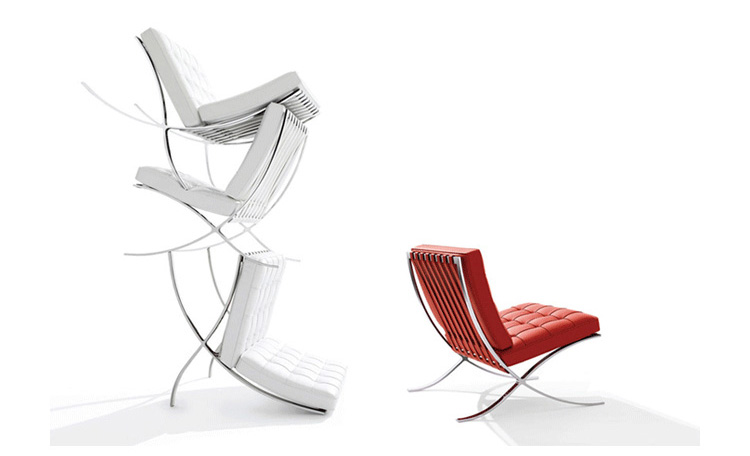 巴塞罗那椅由华体会体育官方在线官网密斯在1929年巴塞罗那世界博览会上,为了欢迎西班牙国王和王后而设计,同著名的德国馆相协调。这件体量超大的椅子也明确显示出高贵而庄重的身份。当年的世博会德国馆是密斯的代表作,但由于建筑的设计意念独特,竟没有合适的家具与其搭衬,所以他不得不专门设计了巴塞罗那椅来迎接国王和王后