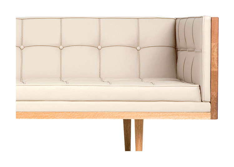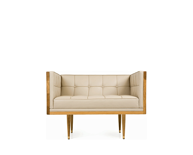Box Armchair,inspired by the 1950's modernist movement,has the pure shape of a box.The inner face of the solid wood form offers refined comfort with crisp upholstery and classic tuft detailing. The four supporting legs appear to be impossibly slender,creating a stunning profile.Designed by Autoban and manufactured by De La Espada for the Autoban brand.