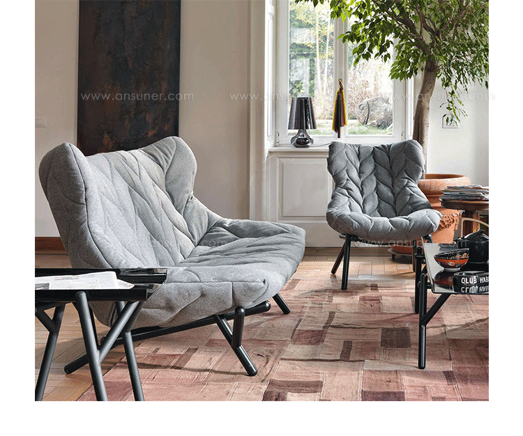 在西班牙鬼才华体会体育官方在线官网Patricia Urquiola的工作与美学中,大自然与人造是不变的主题,树叶沙发系列很好的表现了她的价值观,柔软的座椅,树叶造型,体现着生态与环保,尤其适合家庭使用。这套家具有单座或者双座,造型非常自然生态︰ 图漆金属框架,舒适的座位,树叶造型缝线,时刻让人联想到一棵枝繁叶茂树。椅面才有舒适的布料或者纤维织物和羊毛混纺,椅脚为环氧树脂喷漆铁管。通过活泼的色彩革新的材料,精湛的缝纫工艺完成了一把具有很高潜在表现力的椅子。